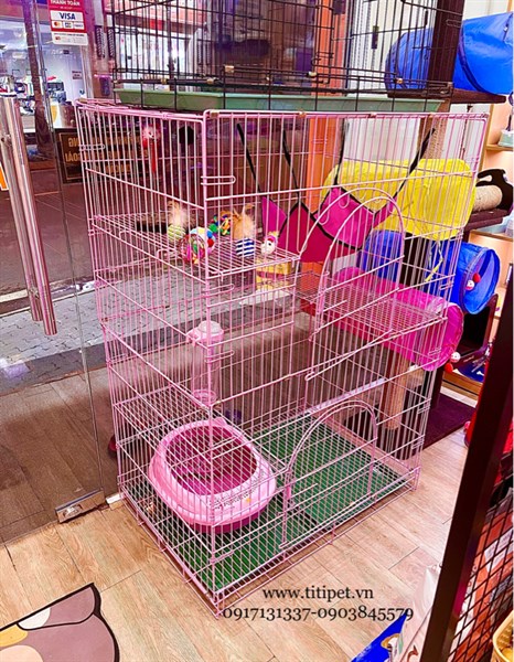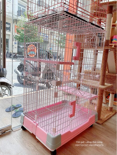 Chuồng mèo hồng 2 tầng